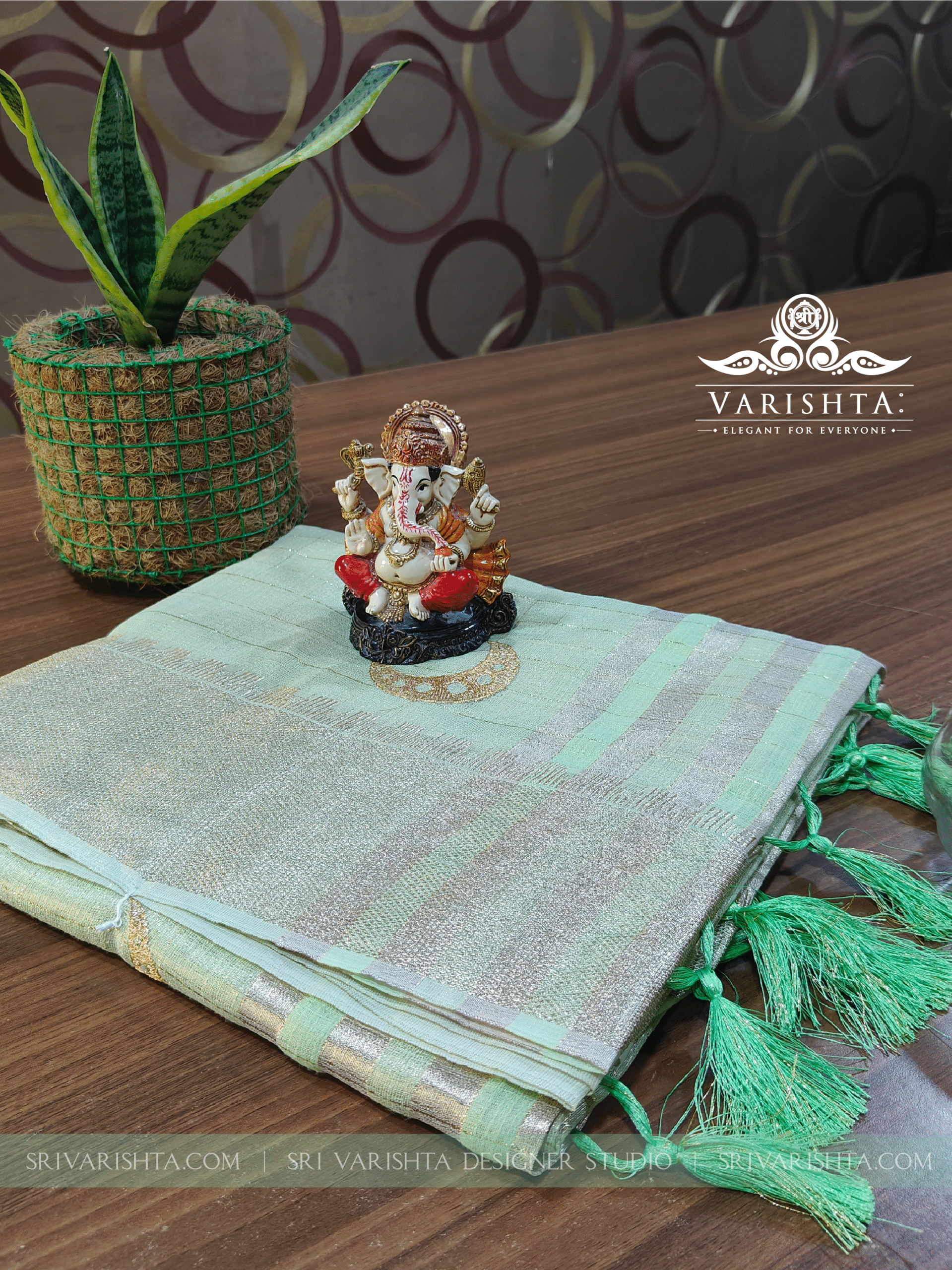 Chandracore Embroidery | Zari Border | Semi Tusser Pista Green