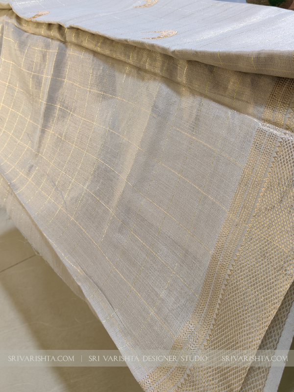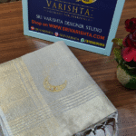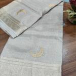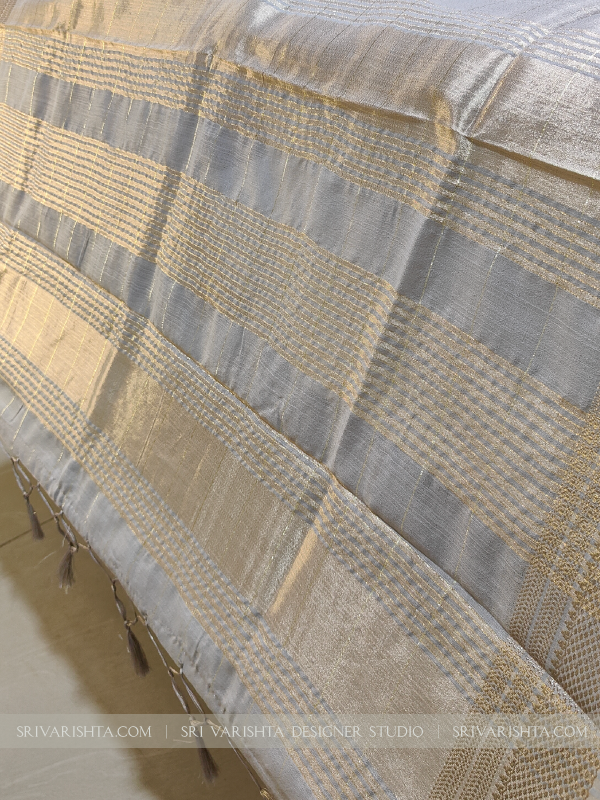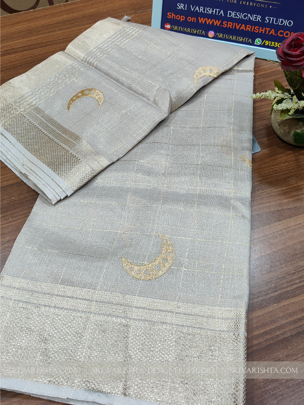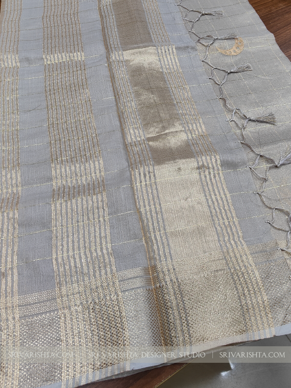 Chandracore Embroidery | Zari Border | Semi Tusser Silvery Beige